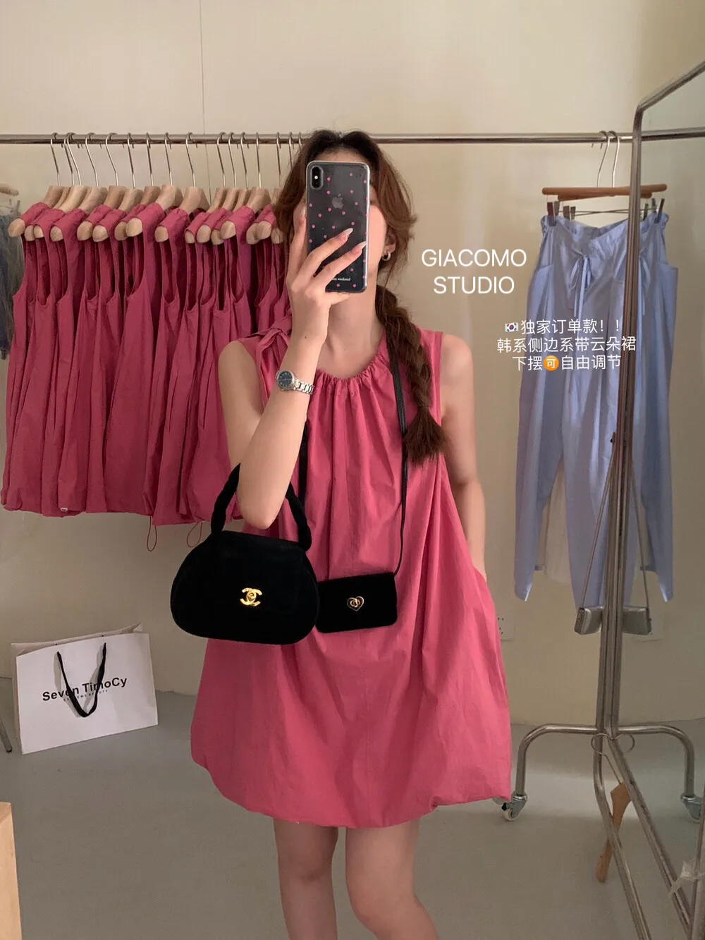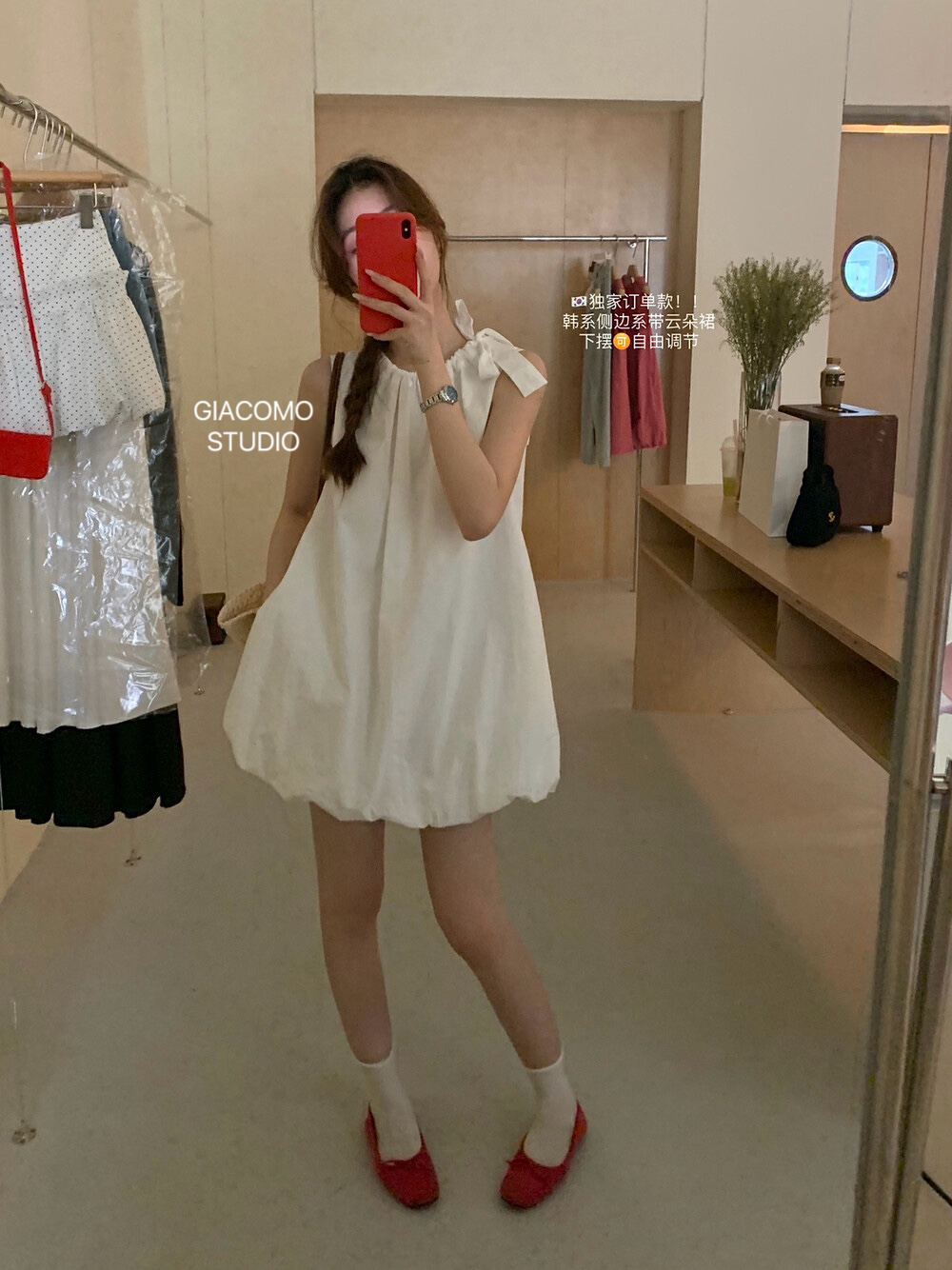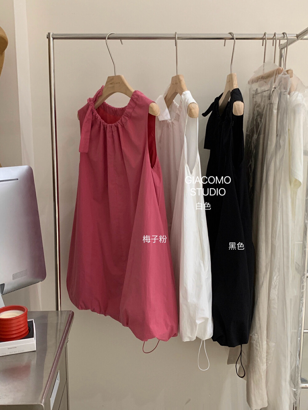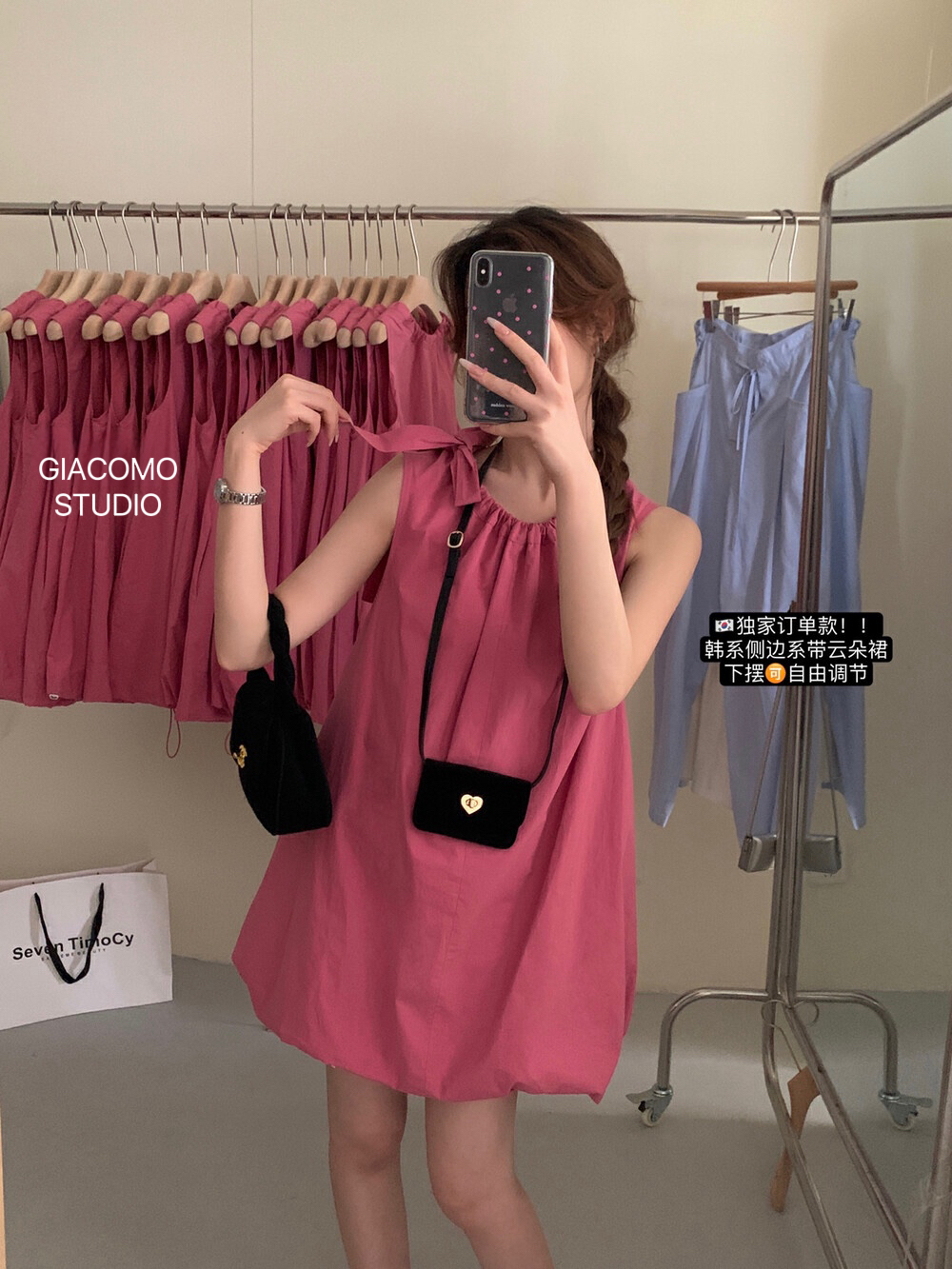 独家订单款!韩系简约纯色侧边系带连衣裙(下摆可自由调节)