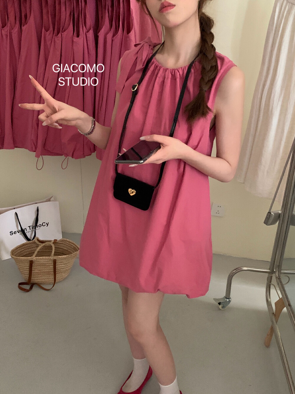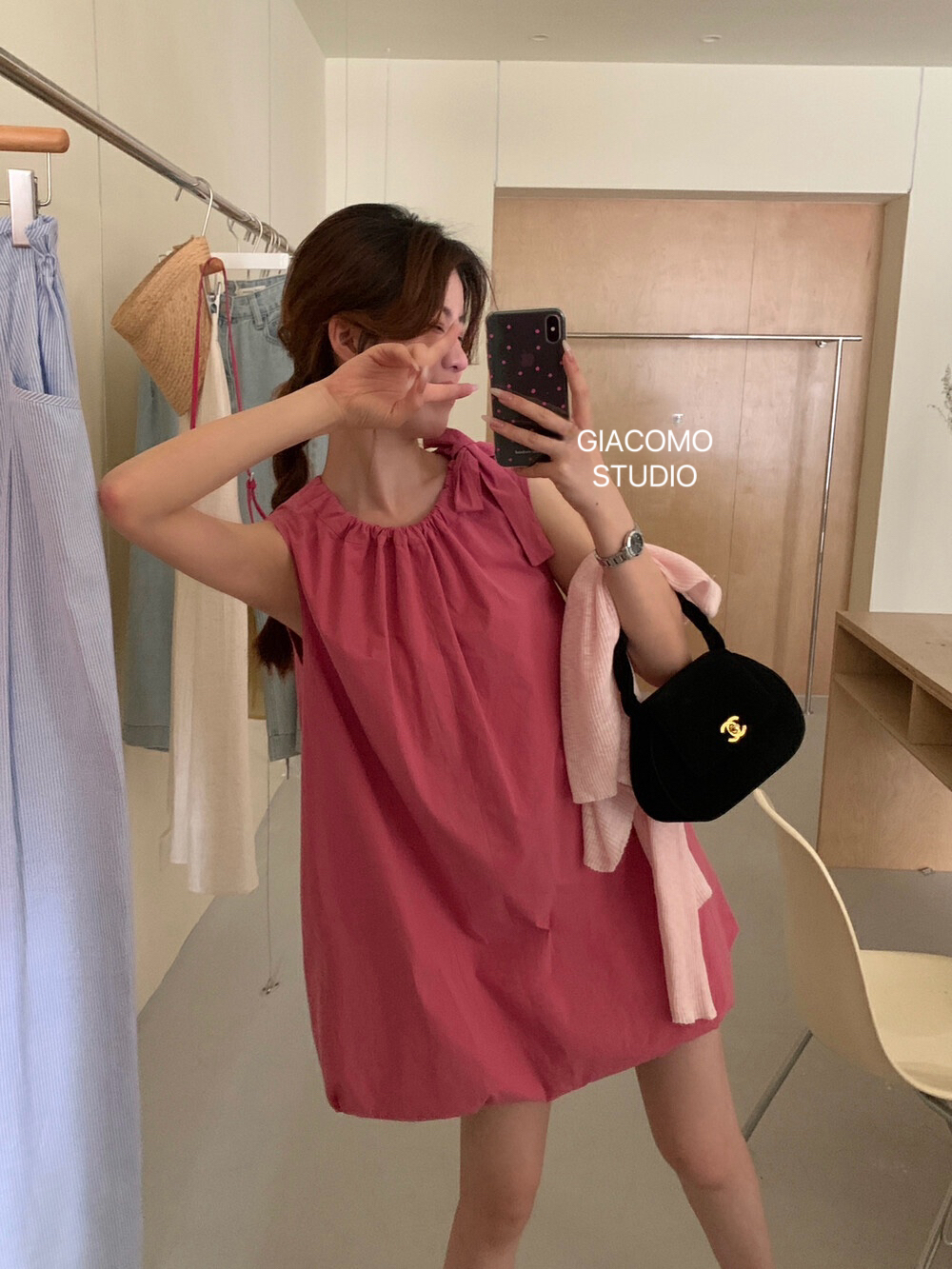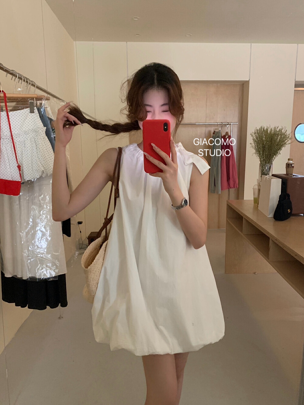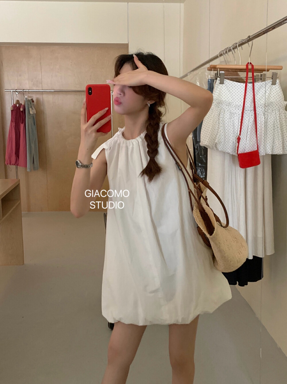 独家订单款!韩系简约纯色侧边系带连衣裙(下摆可自由调节)