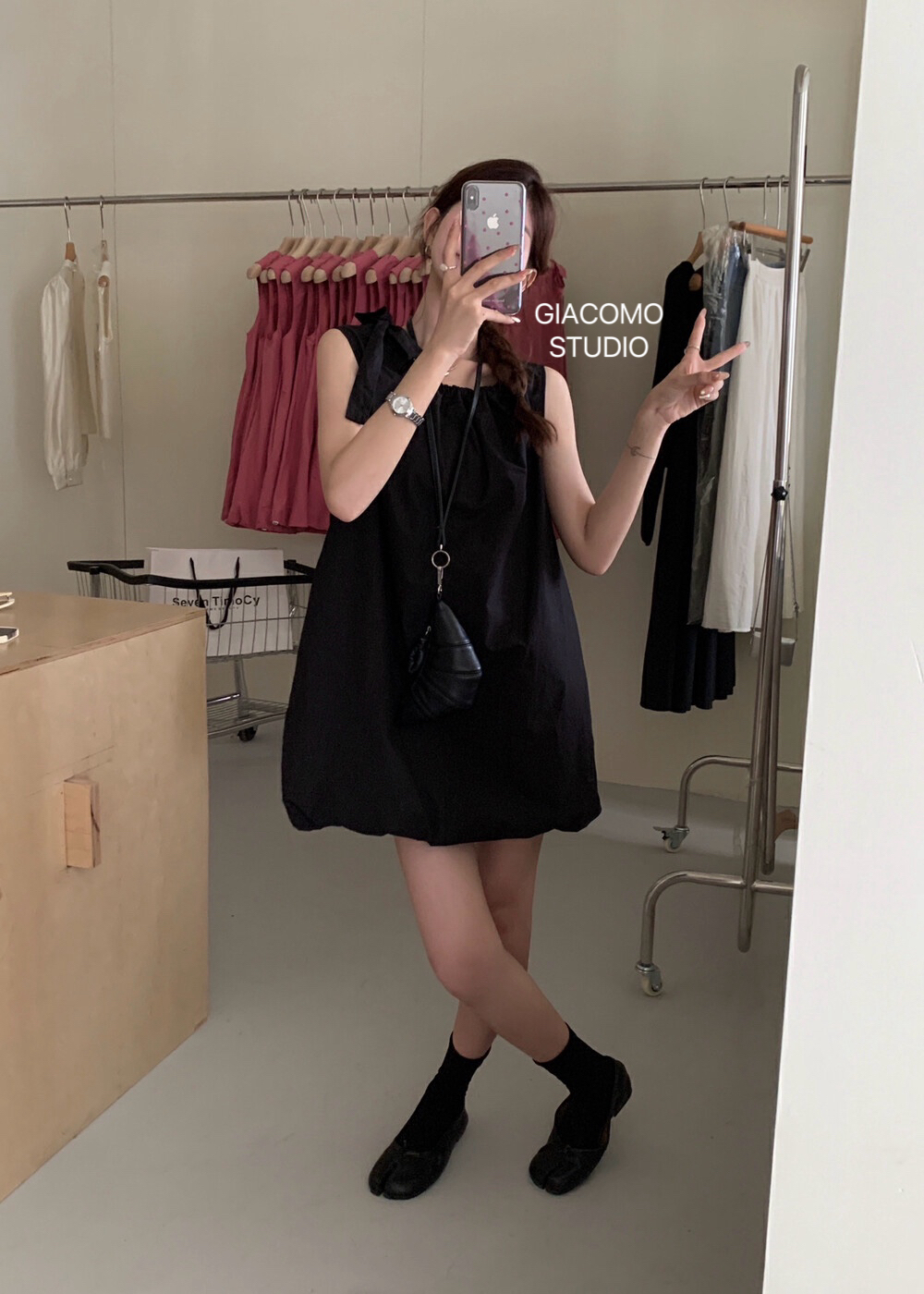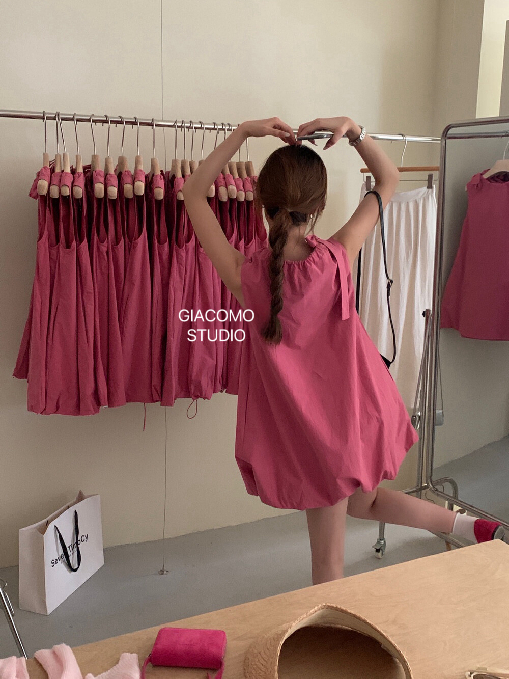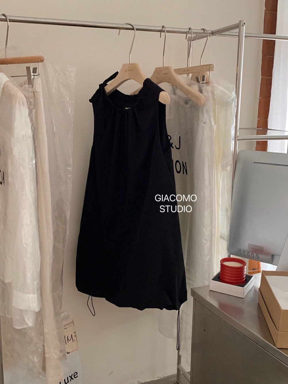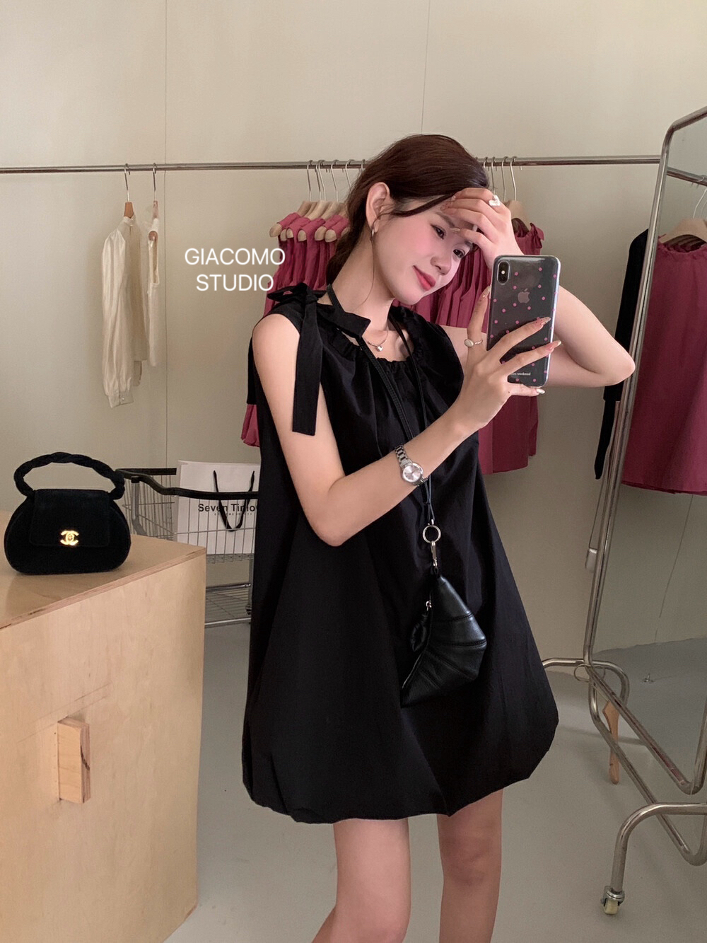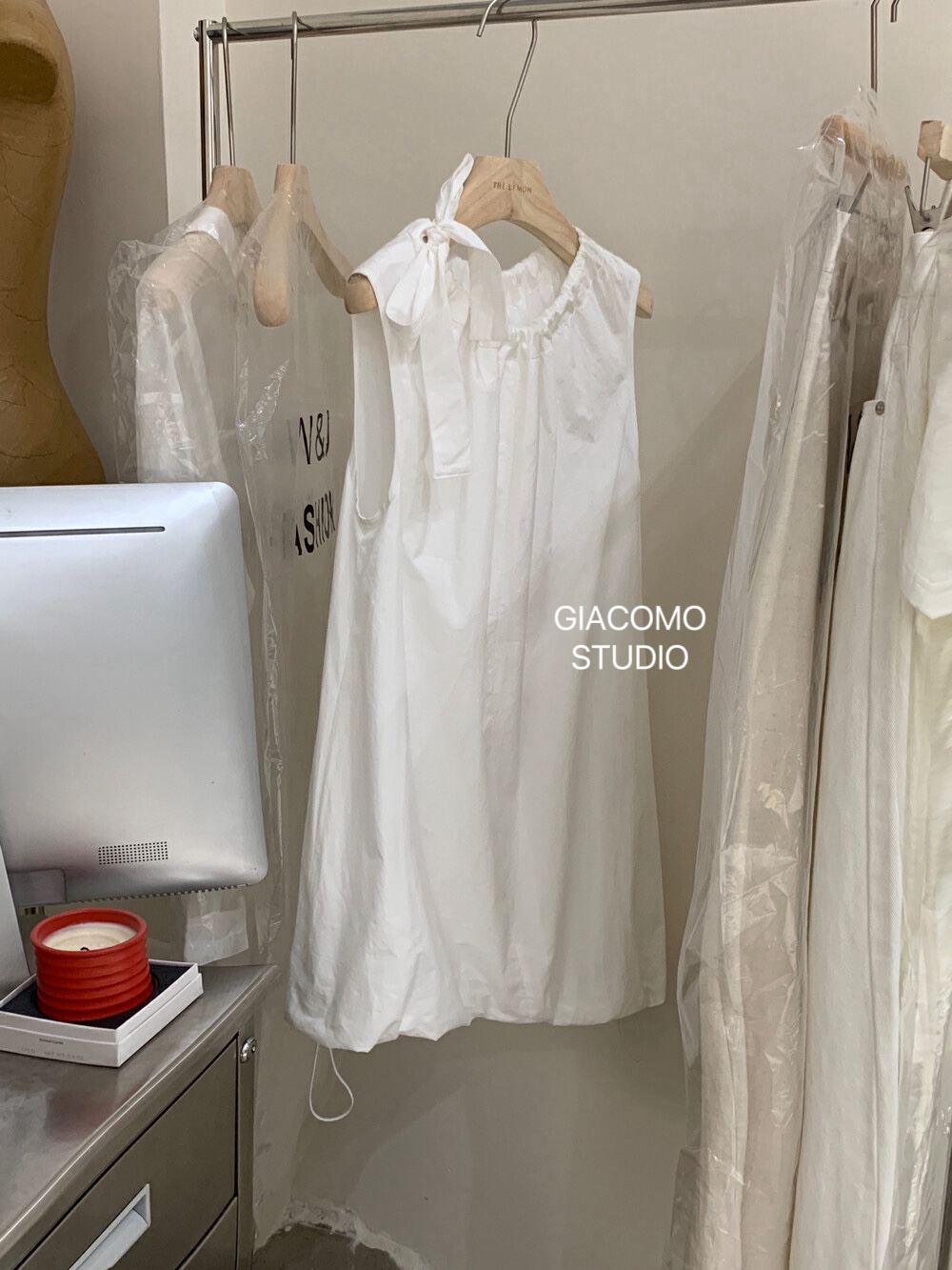 独家订单款!韩系简约纯色侧边系带连衣裙(下摆可自由调节)