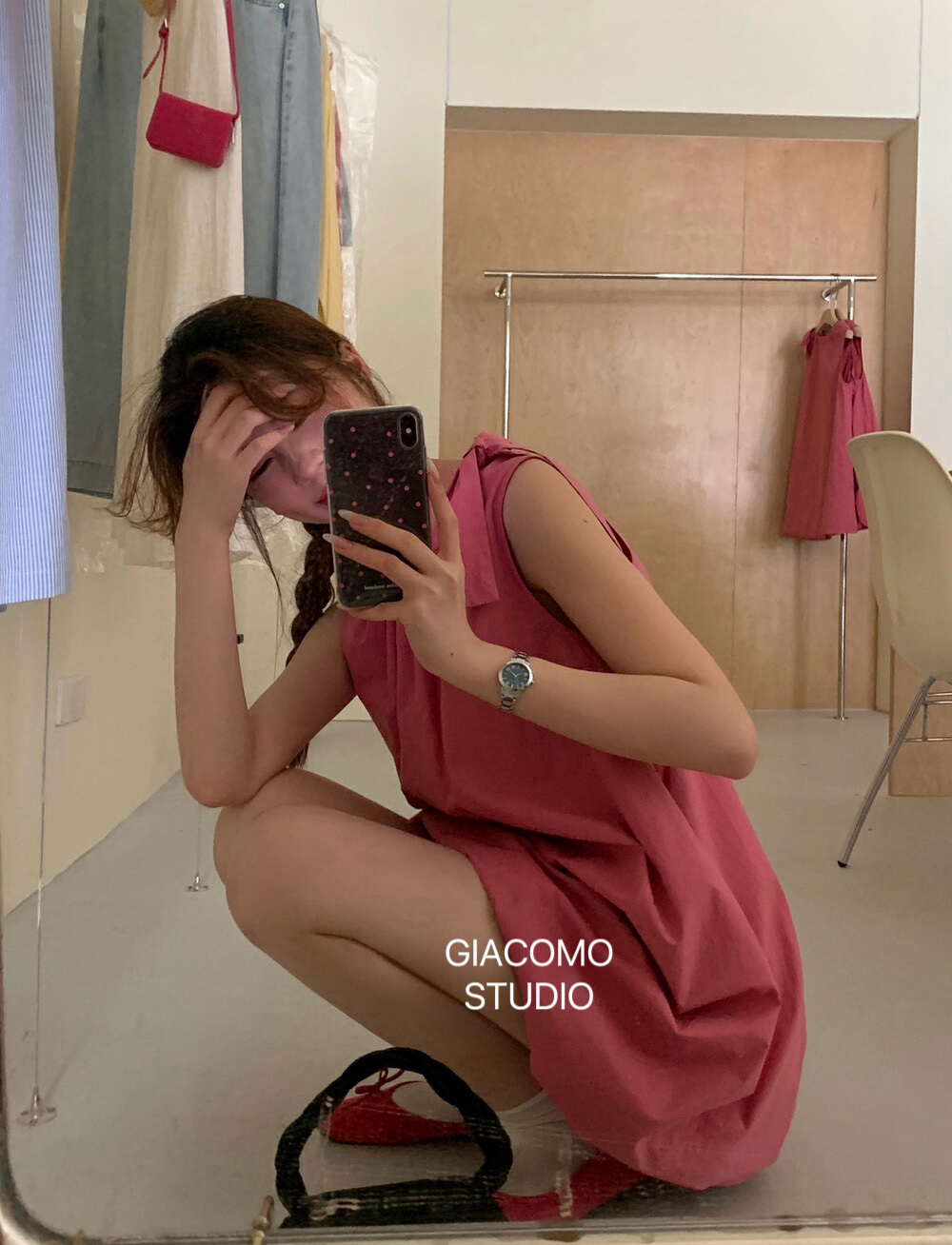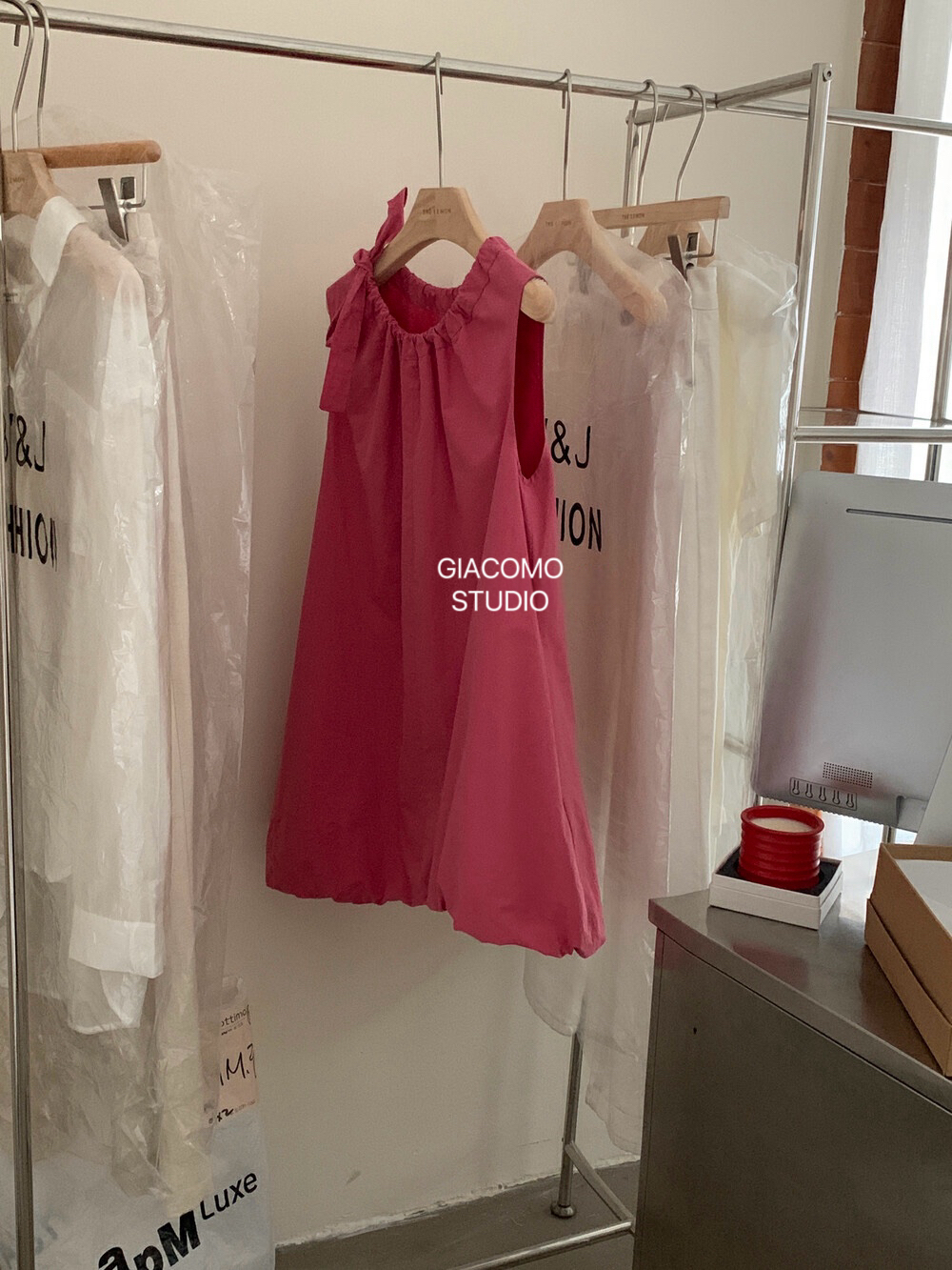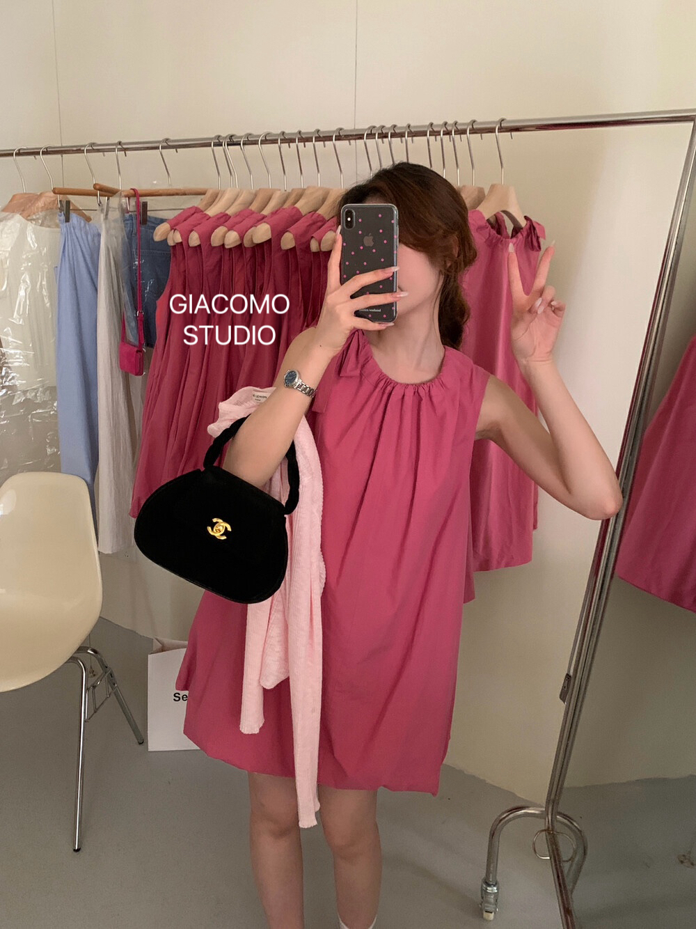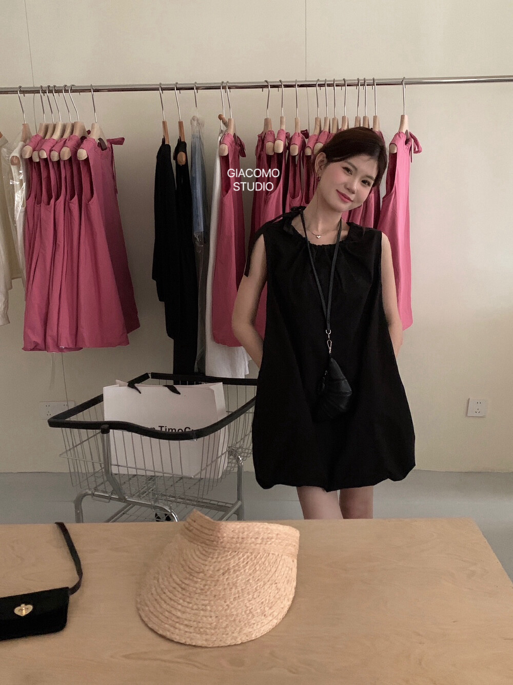 独家订单款!韩系简约纯色侧边系带连衣裙(下摆可自由调节)